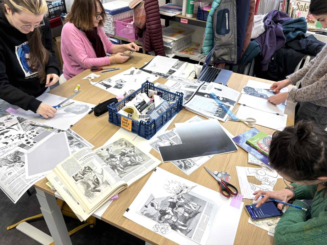 Vous êtes invité·e·s à apporter des photos, des souvenirs et des découpages de chez vous afin de les intégrer à votre œuvre.