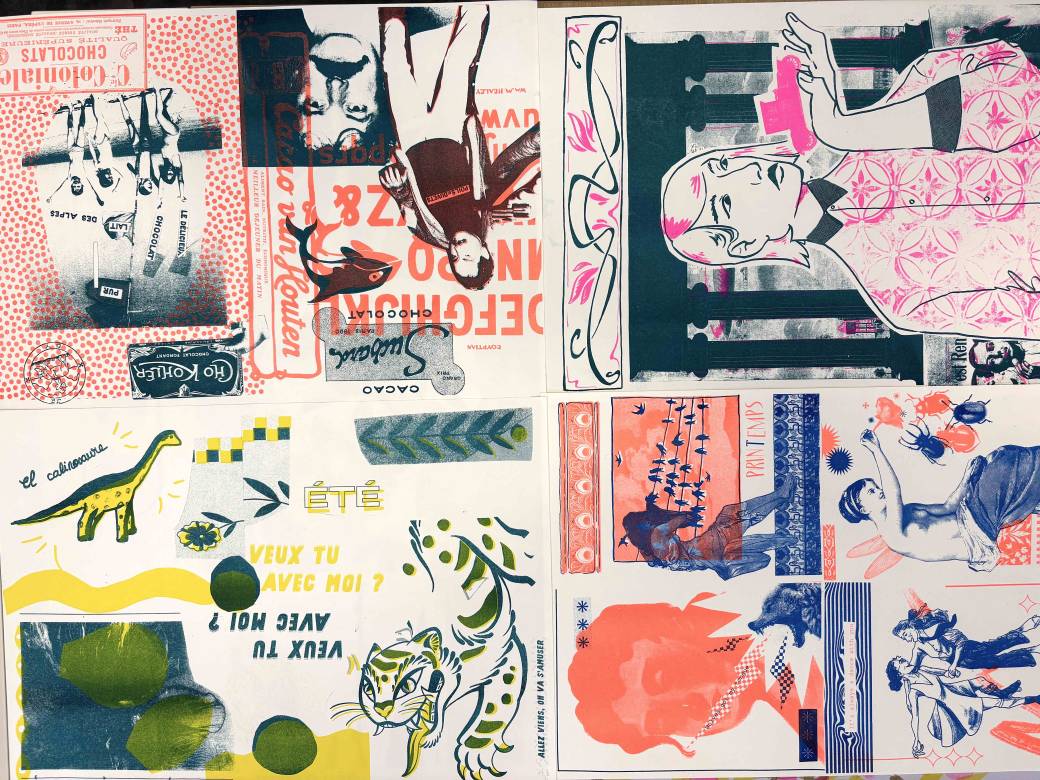 Martina vous présentera des exemples d’affiches, de cartes et de publications pour vous inspirer, vous aider à comprendre le principe des calques en risographie et nourrir vos idées de création.
