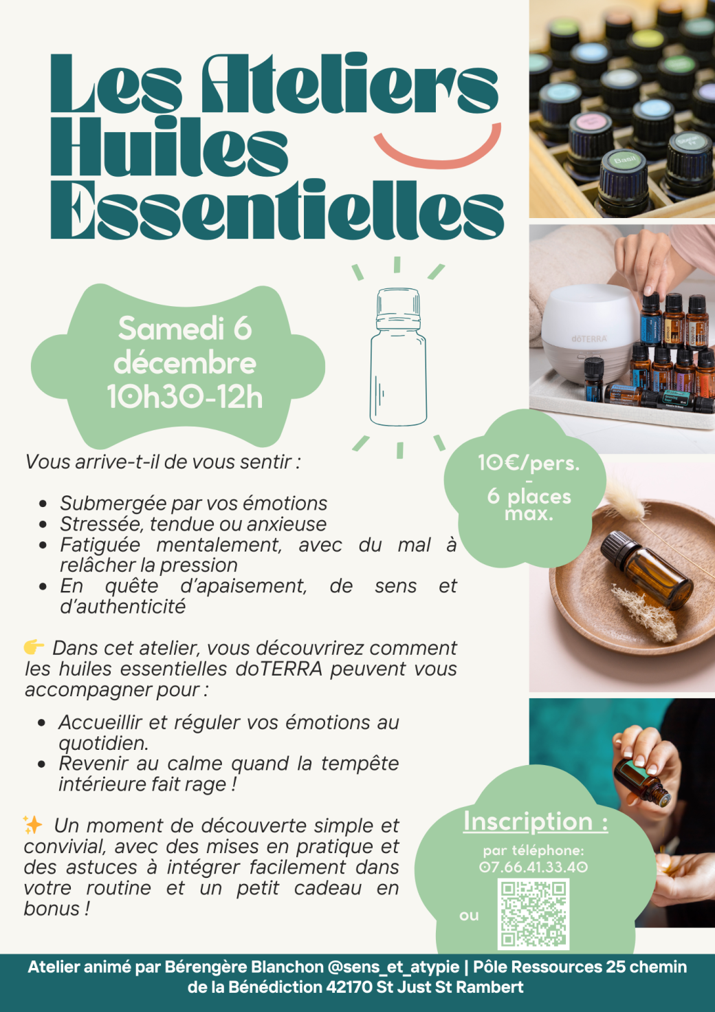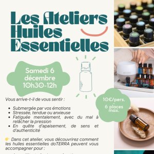 Reservations on : https://www.billetweb.fr/atelier-huiles-essentielles22 --