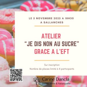 Je vous propose donc un atelier pratique où vous irez à la rencontre de vos émotions et duquel vous repartirez avec un nouvel outil performant, simple et rapide pour apprendre à gérer vos émotions et dire « non » au sucre !