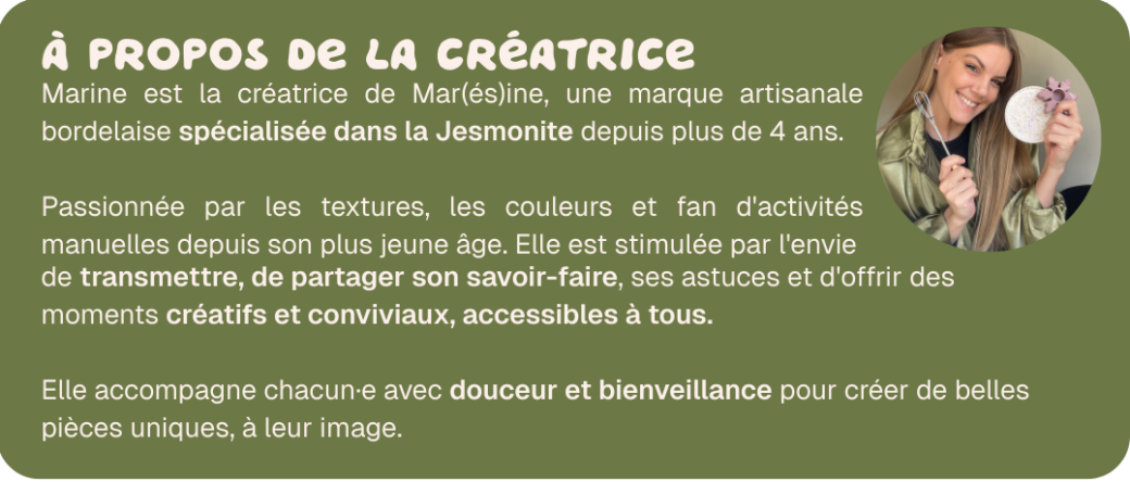 2026-03-21 10:30:002026-03-21 12:30:00Europe/ParisATELIER JESMONITEReservations on : https://www.billetweb.fr/atelier-jesmonite14