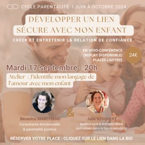 Reservations on : https://www.billetweb.fr/atelier-jidentifie-mon-langage-de-lamour-avec-mon-enfant --