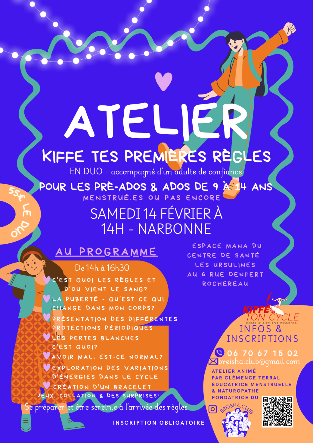 ♡ À travers des animations fun et bienveillantes, vous pourrez vivre ce moment ensemble : théorie, jeux, partage, expérimentations pratiques, coloriages et création d’un bracelet.