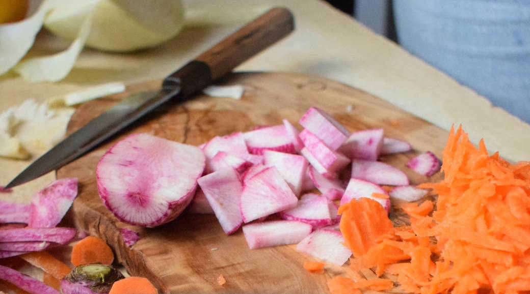 Le Kimchi d'origine coréenne, est une recette traditionnelle, dont l'histoire et les bienfaits vous seront contés lors de l'atelier. On pourrait dire qu'il s'agit d'une choucroute épicée réalisée à partir de pé-tsaï.