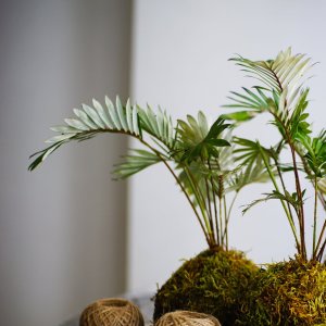 Le kokédama est un art végétal japonais dérivé de celui du bonzaï. Il consiste à habiller le pied de votre plante d’une “boule de mousse naturelle” pour remplacer le pot. Vous pourrez ensuite le poser ou le suspendre.