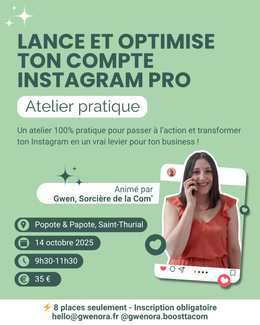 2025-10-14 09:30:002025-10-14 12:30:00Europe/ParisAtelier Lance et optimise ton compte Insta ProReservations on : https://www.billetweb.fr/atelier-lance-et-optimise-ton-compte-insta-pro