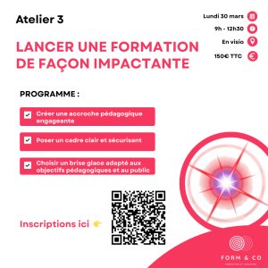 2026-03-30 09:00:002026-03-30 12:30:00Europe/ParisAtelier - Lancer une formation de façon impactanteReservations on : https://www.billetweb.fr/atelier-lancer-une-formation-de-facon-impactante
