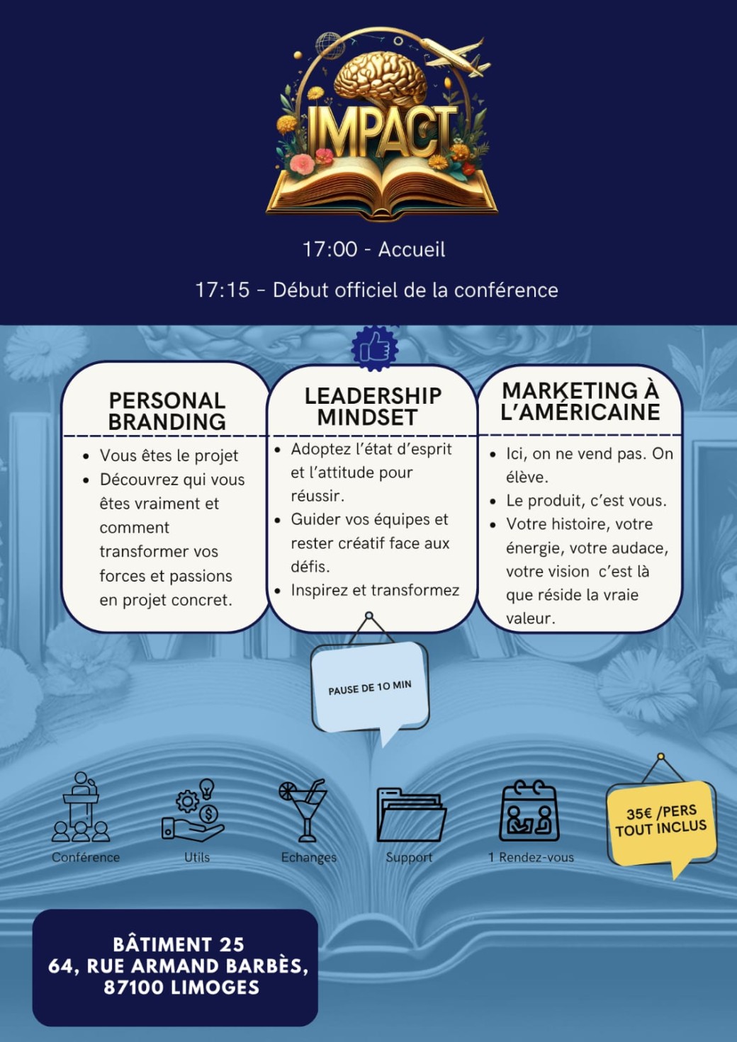 2026-01-08 12:30:00 2026-01-08 14:00:00 Europe/Paris Atelier Lille / Personnal branding Reservations on : https://www.billetweb.fr/atelier-lille-personnal-branding -- CONFÉRENCE IMPACT   Leadership & Mindset : toi, ton branding, ton projet, ta stratégie marketing à l’américaine   Une expérience pour passer au niveau supérieur Et si tu décidais de prendre ta place, d’assumer ton message et de donner à ton projet l’élan qu’il mérite ? La Conférence IMPACT, animée par Agnès et Yané, est une immersion de 2h30 pour activer ton leadership, affirmer ton identité de marque et clarifier ta stratégie marketing. Un moment fort, authentique et inspirant pour t’aider à passer de la réflexion à l’action.   AU PROGRAMME Leadership & Mindset : incarner ton message avec puissance Branding personnel : créer une image alignée et mémorable Stratégie marketing à l’américaine : penser plus grand, structurer mieux, attirer plus. Prendre ta place c'est t'offrir  : L’accès à 2h30 de conférence Un livret support pour suivre et ancrer les apprentissages Un cocktail de clôture pour échanger et réseauter Un rendez-vous de bilan avec Yané et Agnès 40 Place du Théâtre, Lille, France Dupuytrein