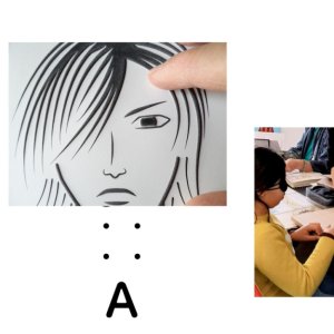 Atelier de découverte de l'image tactile, de portraits en relief de smiley et de manga les yeux bandés.