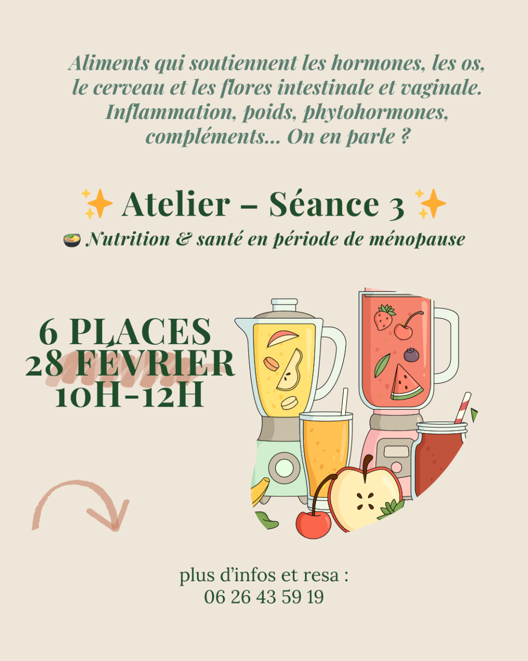 2026-02-28 10:00:002026-02-28 12:00:00Europe/Paris✨ ATELIER MÉNOPAUSE – Nutrition et santé en période de ménopause ✨Reservations on : https://www.billetweb.fr/atelier-m-nopause-nutrition-et-sante-en-periode-de-menopause
