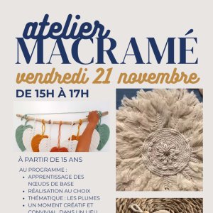 2025-11-21 15:00:002025-11-21 17:00:00Europe/ParisAtelier Macramé Reservations on : https://www.billetweb.fr/atelier-macrame36