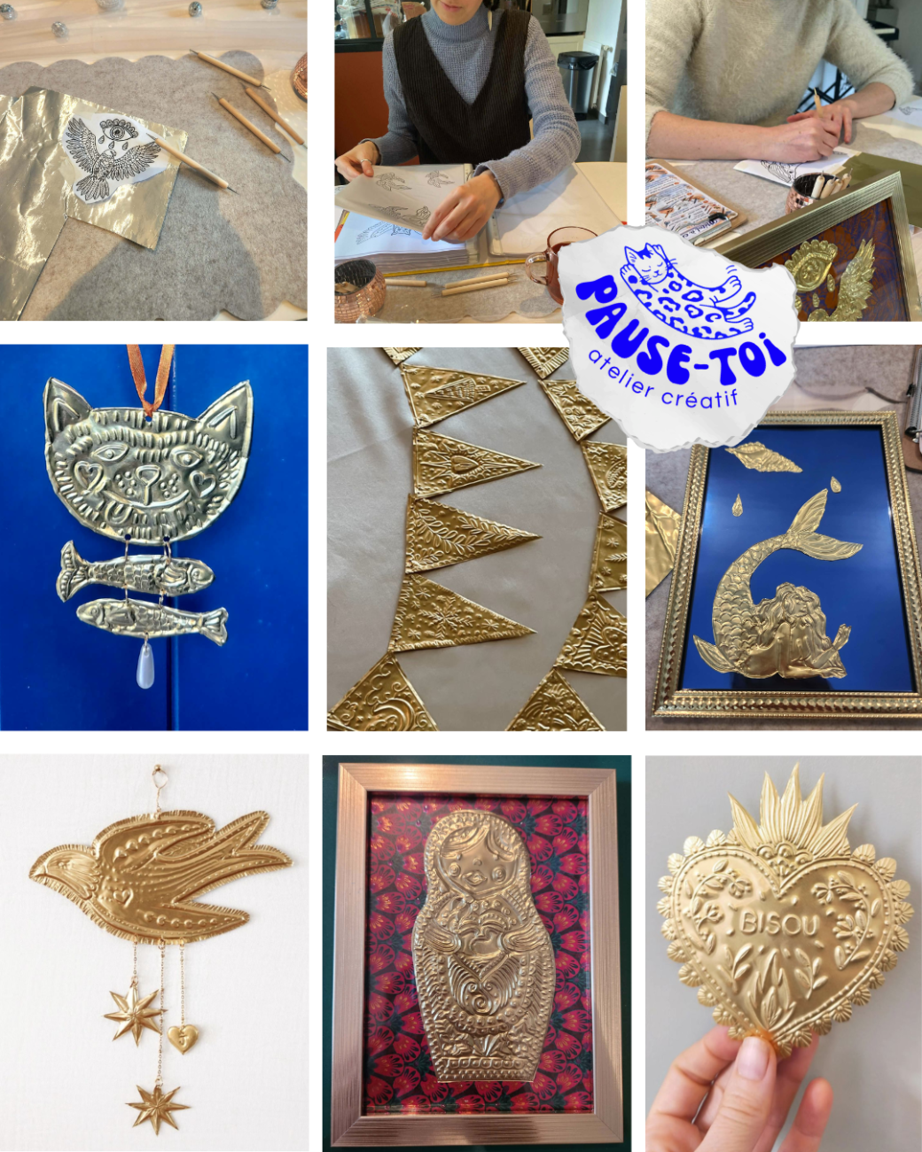 Le métal à repousser est une technique artisanale qui consiste à créer des motifs en relief sur une fine plaque de métal, à l’aide d’outils spécifiques.