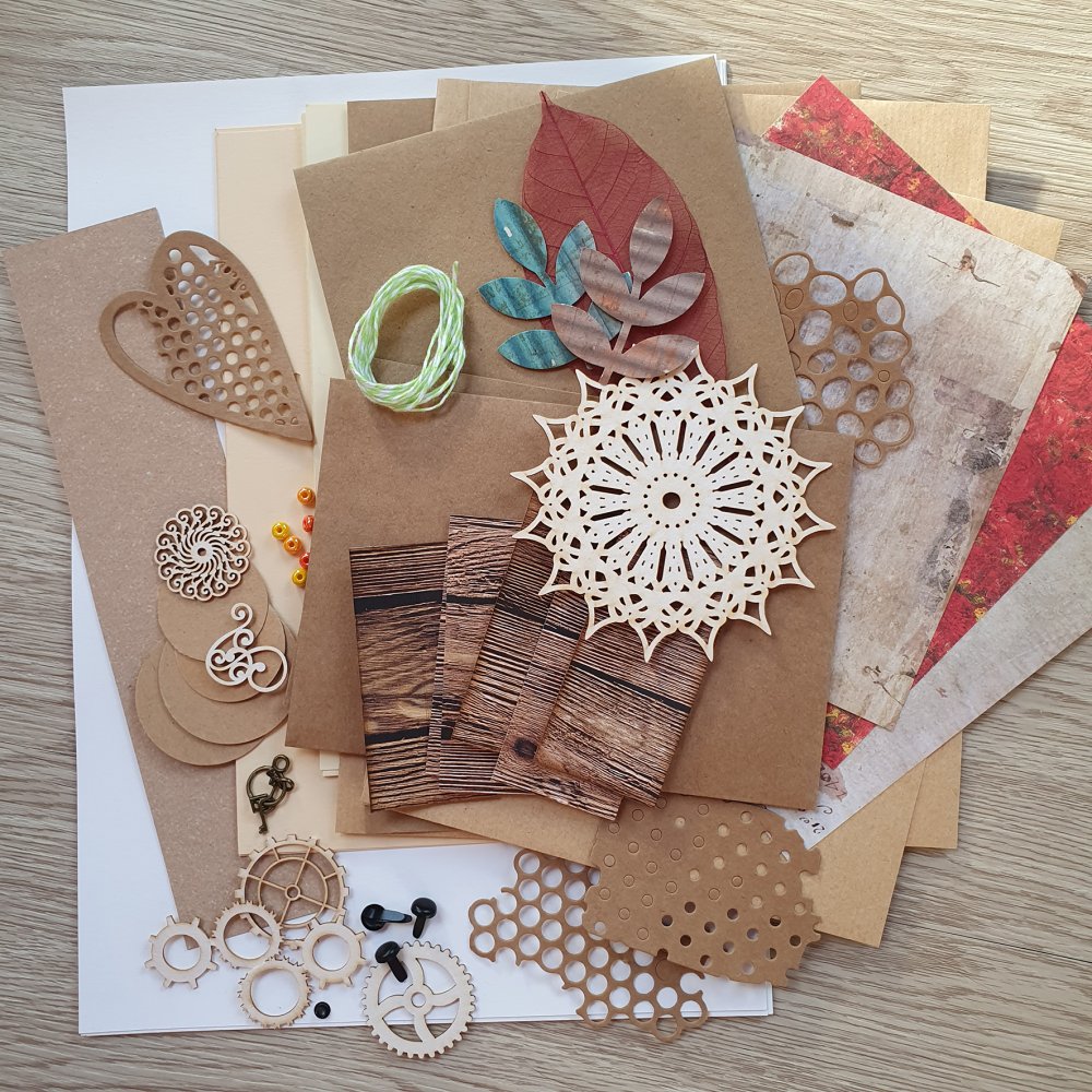 - Des décorations (Dies ou motifs en carton bois (détail dans le groupe)