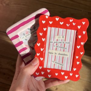 Tu repars avec tes créations : ton cadre en argile + ton poème, ainsi que le nécessaire pour peindre ton cadre chez toi une fois sec (peinture & vernis).