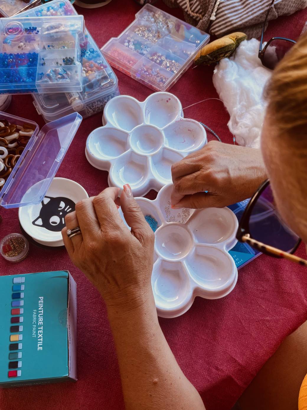 - À partir d’un large choix de stickers, magazines, illustrations, paillettes, feutres et petits accessoires décoratifs.