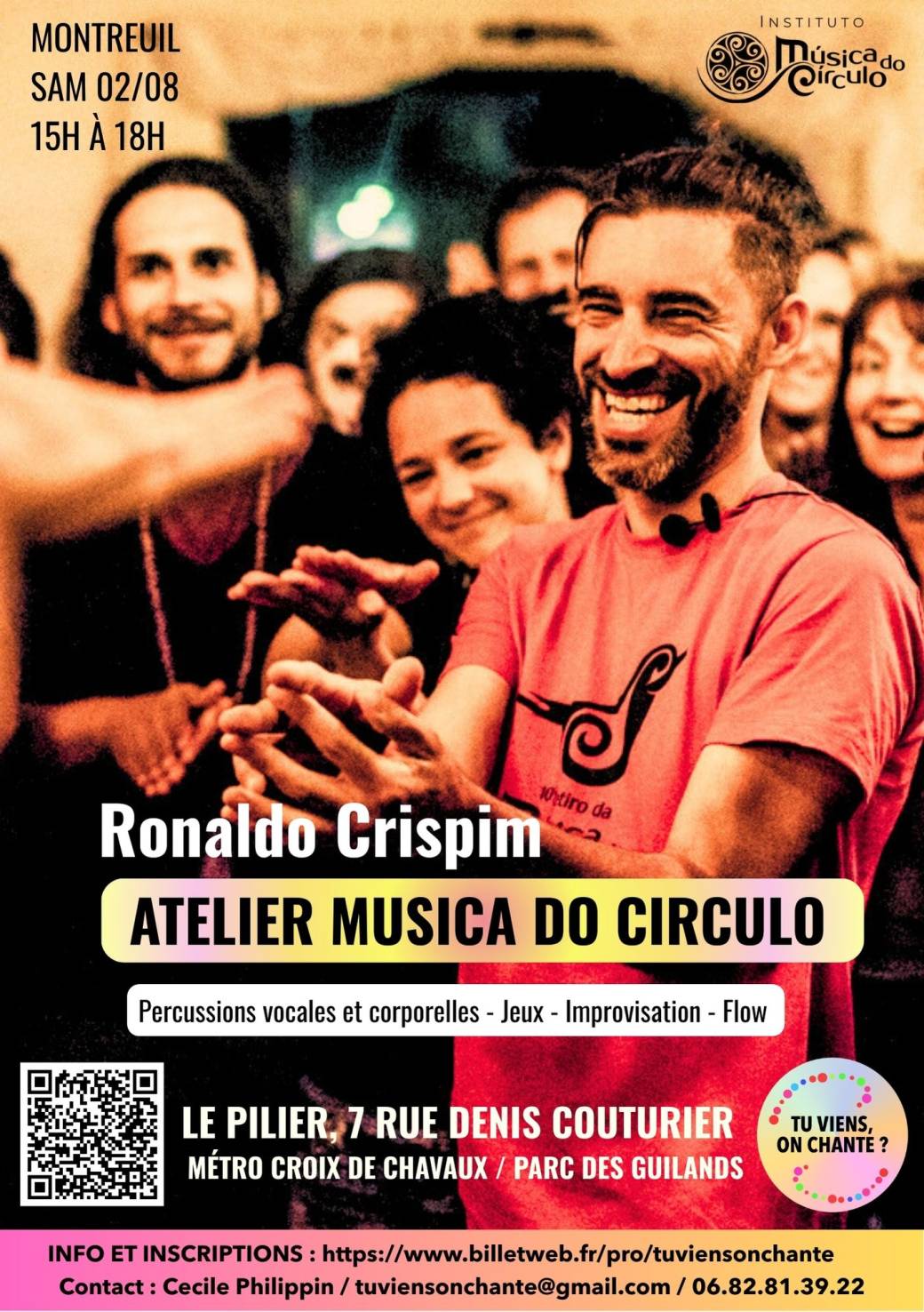 I am delighted to announce that Ronaldo Crispim, from Sao Paulo, Brazil, will be leading an exceptional 3-hour immersion workshop in Montreuil this summer, exploring Brazilian rhythms, vocal and body percussion, and the improvisational games of Musica do Circulo.
