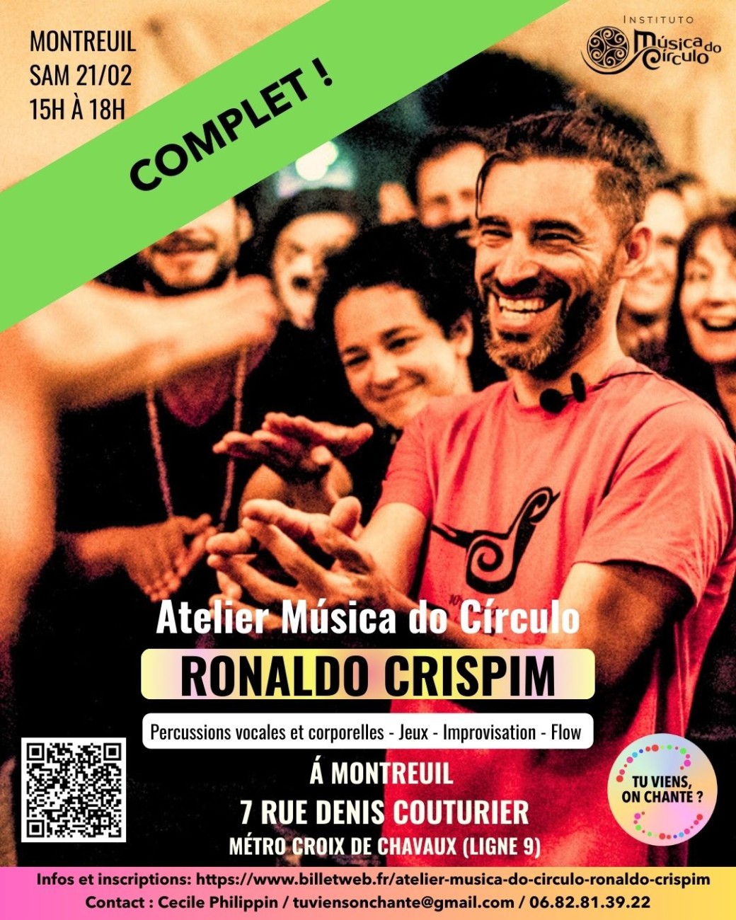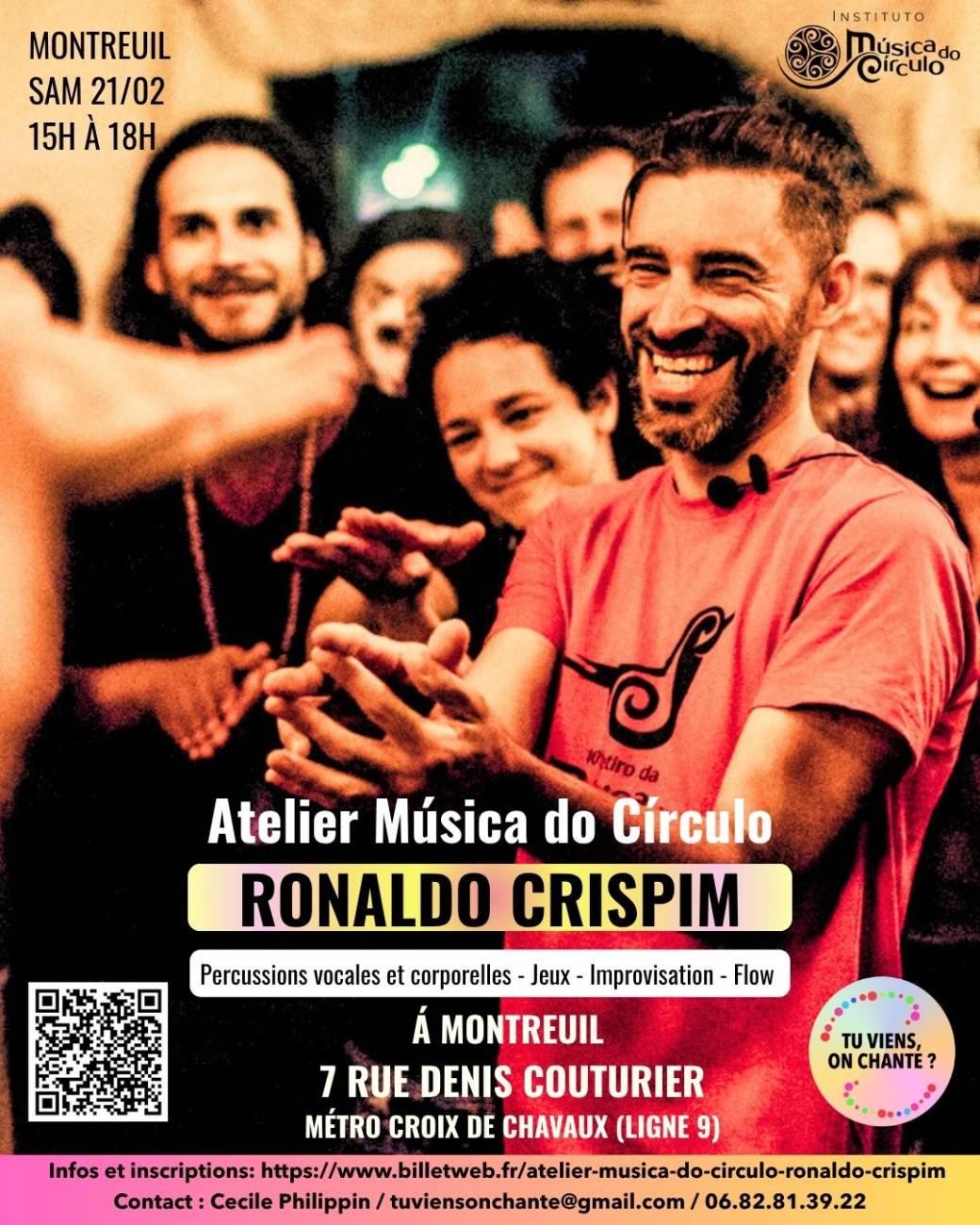 I am delighted to announce that Ronaldo Crispim, from Sao Paulo, Brazil, will be leading an exceptional 3-hour immersion workshop in Montreuil this winter, exploring Brazilian rhythms, vocal and body percussion, and the improvisational games of Musica do Circulo.