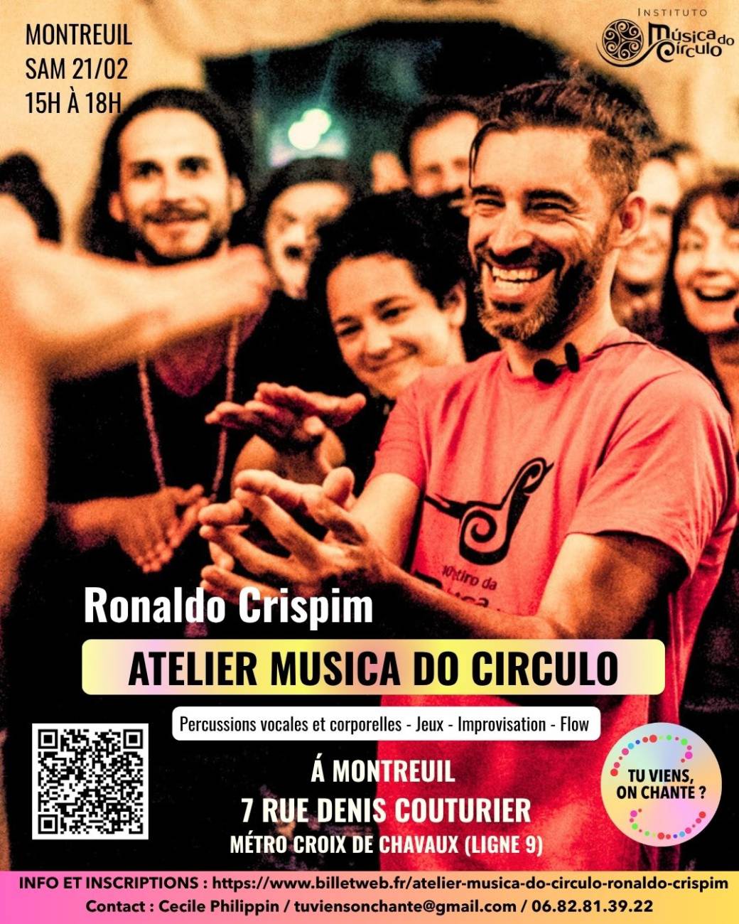 I am delighted to announce that Ronaldo Crispim, from Sao Paulo, Brazil, will be leading an exceptional 3-hour immersion workshop in Montreuil this summer, exploring Brazilian rhythms, vocal and body percussion, and the improvisational games of Musica do Circulo.