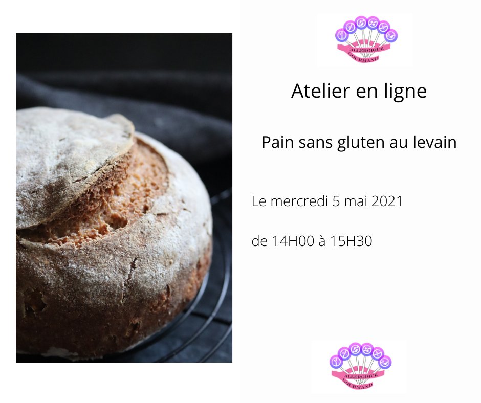 2021-05-05 14:00:00 2021-05-05 15:30:00 Europe/Paris Atelier pain sans gluten au levain Reservations on : http://allergiquegourmand.over-blog.com/ -- Après un atelier spécial levain, passons à l'étape réalisation de son pain sans gluten au levain.Je vous expliquerai toutes les étapes, les temps de pousse et les conditions, les différentes farines et leur réaction ainsi que l'utilisation des divers ingrédients. Un délicieux moment pour un délicieux pain.Liste des ingrédients envoyés à l'inscritpiton ainsi que le lien ZOOM de l'atelier. Puis envoi de la recette, de la fiche alternative et du lien replay par la suite. Toujours par mail. - Marie LOSSY EI