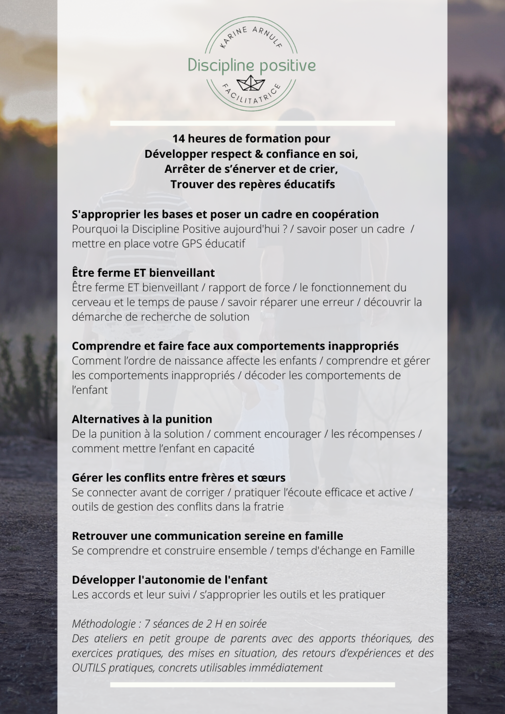 Je m’appuie sur les outils de la Discipline Positive, que je rends concrets, accessibles et directement utilisables.