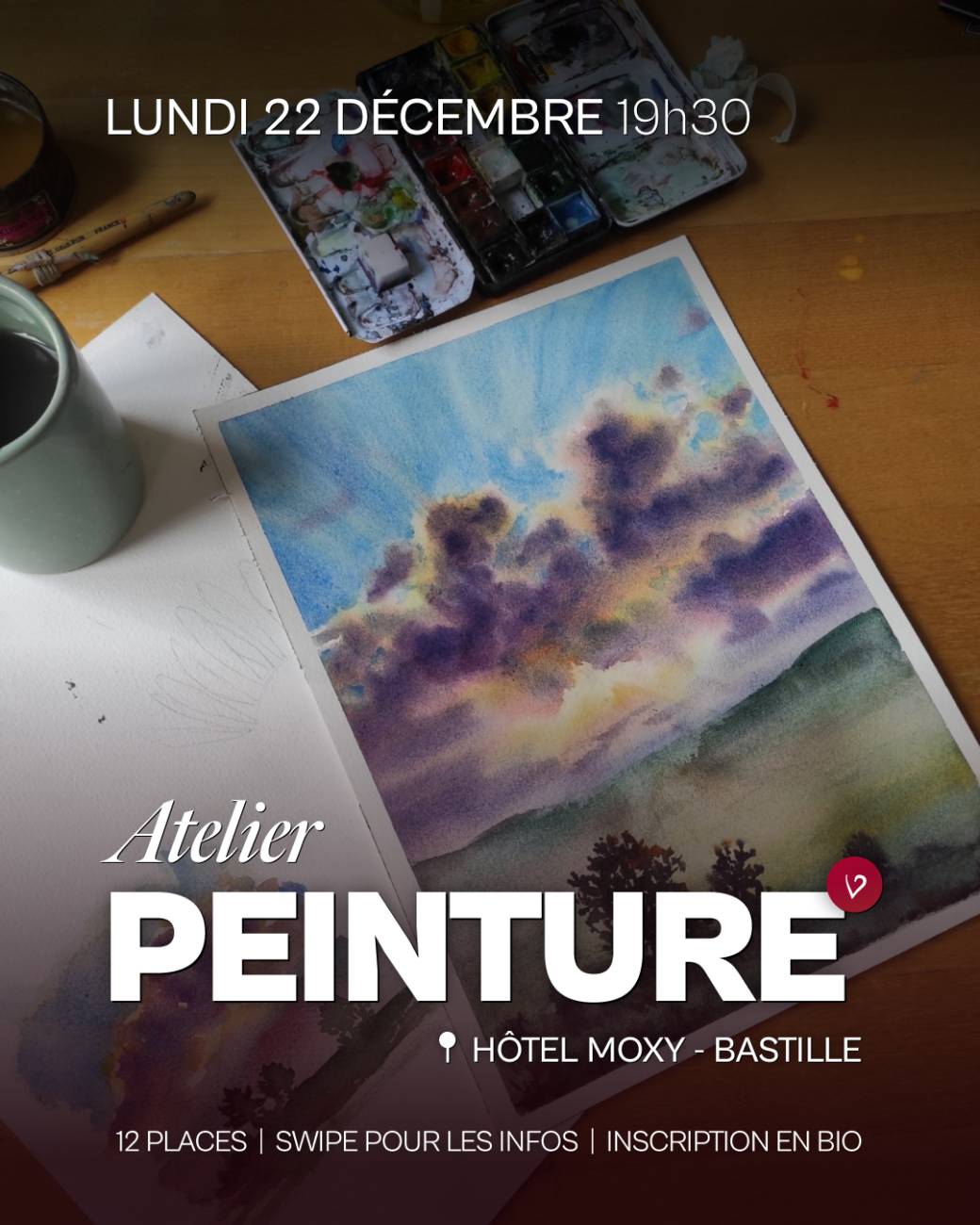 Rejoins-nous pour une session d’aquarelle à l’Hôtel Moxy, en plein cœur de Paris de 19h à 22h.