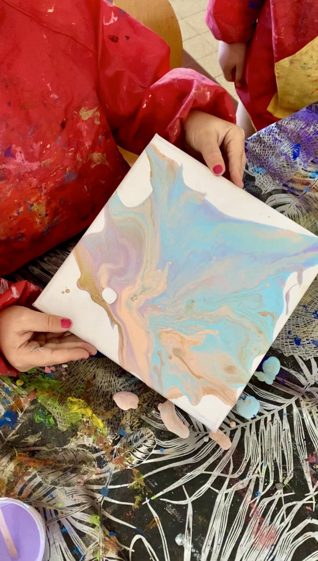 Un atelier ludique où les enfants découvrent les effets imprévisibles et surprenants de la peinture liquide pour créer une œuvre unique.