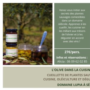 Samedi 21 mars et dimanche 19 avril, le Domaine Lupia, producteur d’huile d’olive, d’olives de bouche et de vin à Sérignan, vous ouvre ses portes pour deux matinées pédagogiques et gourmandes !