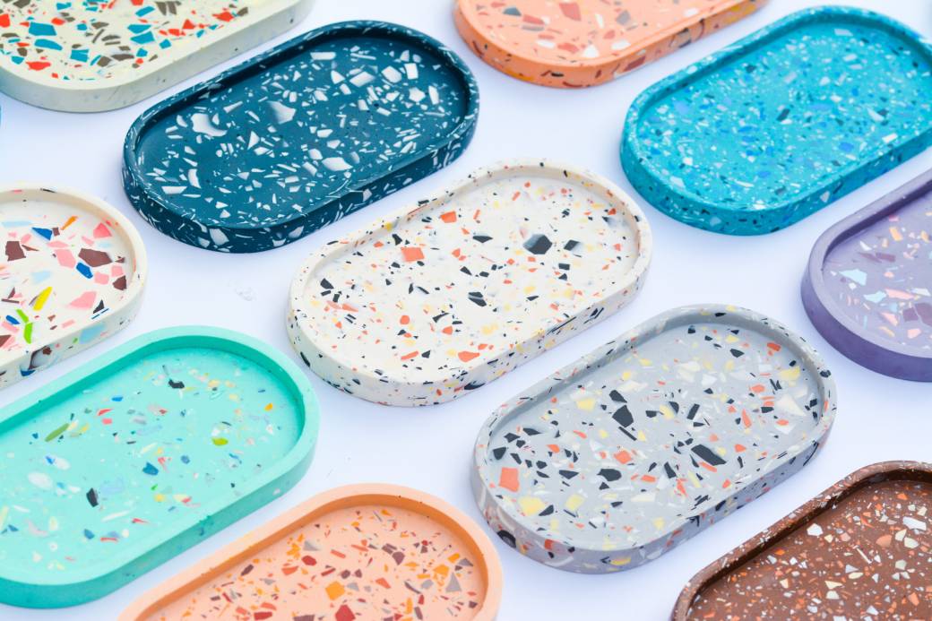 ✨ La jesmonite ? C’est la nouvelle tendance du moment ! Grâce à cette technique, vous pouvez réaliser des petits objets comme des coupelles, pots ou boîtes, à base de résine naturelle et aux effets très en vogue, comme le : terrazzo ou le marbré.