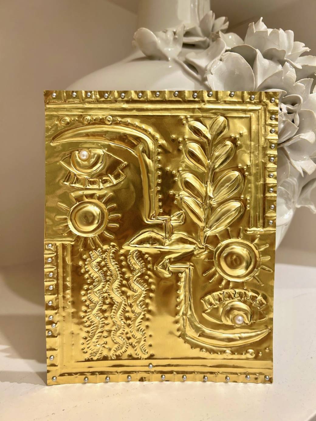 ✨ Explorez l'une des grandes tendances DIY du moment : l'embossage sur métal, technique artisanale qui consiste à créer des décors en relief sur une fine plaque de métal dorée, argentée ou colorée.