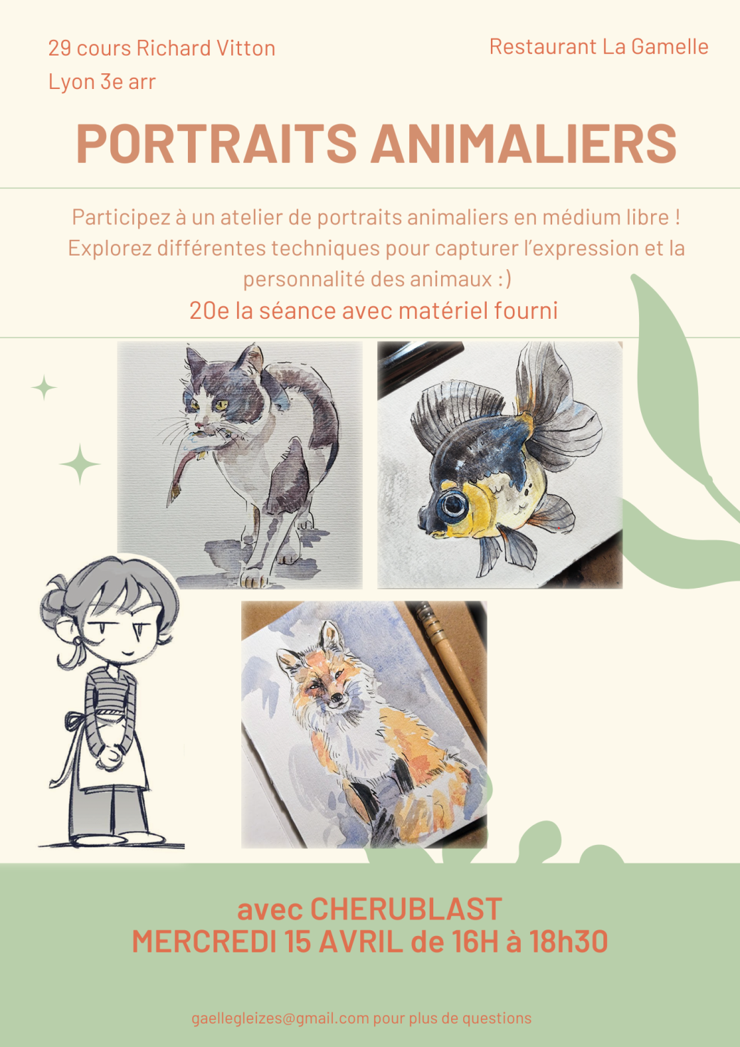Rejoignez-nous à La Gamelle pour un atelier de portraits animaliers en médium libre !