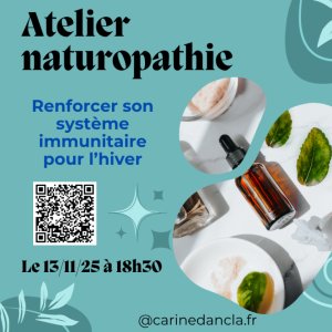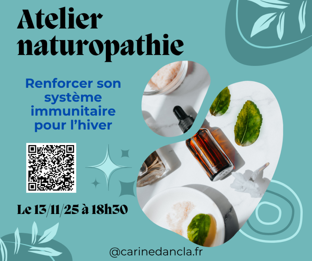 Vous repartirez avec plein de conseils et des astuces naturelles pour bien vivre votre hiver ! (aliments, hydrolats, huiles essentielles, plantes, recettes de tisanes, de grog, oligo-éléments, stratégies à adopter pour soulager une gastro, un mal de gorge..., etc...)