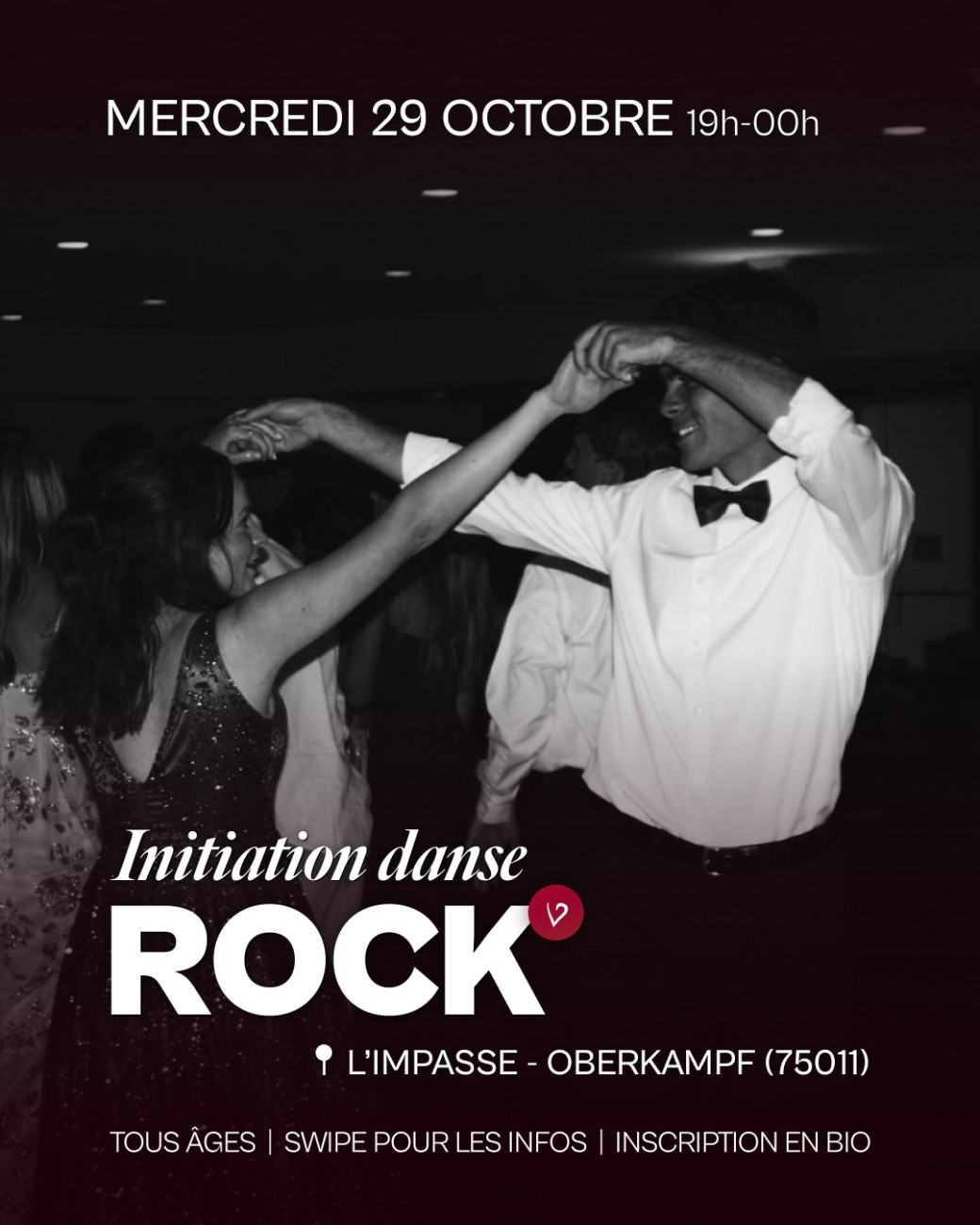 2025-10-29 19:00:002025-10-29 23:55:00Europe/ParisINITIATION DANSE ROCKReservations on : https://www.billetweb.fr/atelier-rock