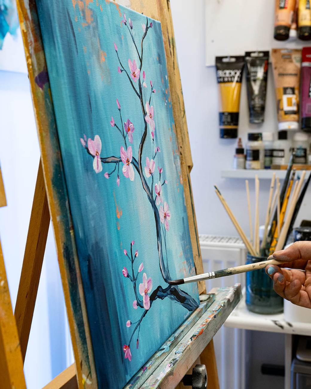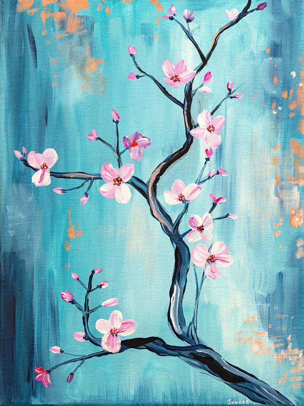 Entre nuances de bleu profond et touches de rose pastel, je te guide pas à pas pour créer une œuvre lumineuse, délicate et apaisante.