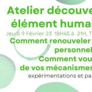 basé sur l'approche élément humain, cet atelier participatif vous aidera à prendre de la hauteur et à initier un renouveau pour 2023, qui pourra impacter vos relations inter-personnelles.