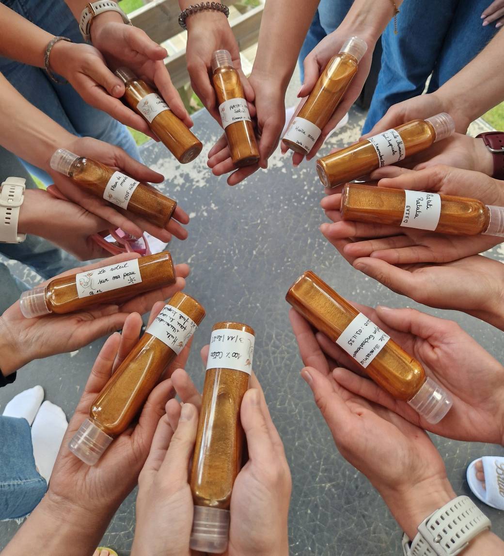 Dans cet atelier, vous allez confectionner un gel exfoliant et une huile de soin illuminatrice pour le corps, qui préparera votre peau au soleil et agira aussi en soin après-soleil, tout en laissant un voile légèrement satiné sur votre peau.
