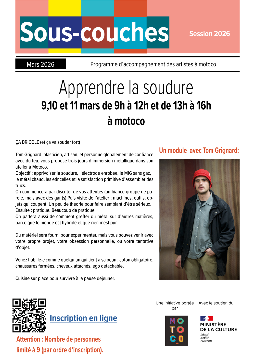 Depuis janvier 2024, motoco met en oeuvre, grâce au soutien du Ministère de la culture, un programme de formation et d'accompagnement des artistes, dans l'objectif de les aider à mieux maitriser les fondamentaux administratifs et à enrichir les méthodologies de travail. Motoco, Rue des Brodeuses, Mulhouse, Francemotoco&co