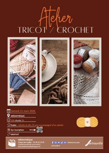 Atelier de tricot tous niveaux, les aiguilles et la laine sont fournies par les tricoteuses de l'association "Jeux de fils et d'aiguilles".