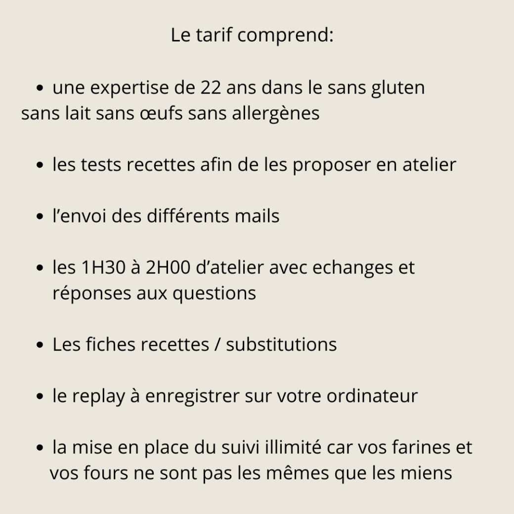 1H30 pendant lesquelles nous allons partager autour de cette réalisation sans gluten, sans lait, sans oeuf, sans les 14 ADO.