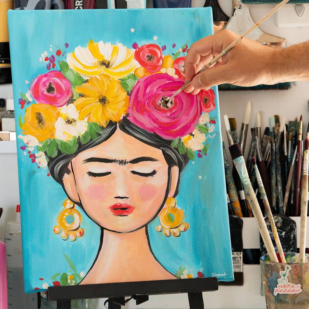 Laissez-vous inspirer par l’icône Frida Kahlo le temps d’un atelier haut en couleurs! Je vous guide pas à pas pour créer votre propre portrait à la Frida, le tout dans une ambiance conviviale, un verre à la main.