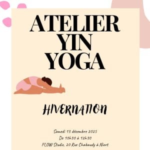 2025-12-13 10:30:00 2025-12-13 12:30:00 Europe/Paris Atelier yin yoga - Hivernation Reservations on : https://www.billetweb.fr/atelier-yin-yoga-hivernation -- Pendant cet atelier de yin yoga aux prémices de l'hiver, prenons le temps de ralentir, de faire une pause tout en détente et en relachement.  Flow Studio, Rue Chabaudy, Niort, France Morgane