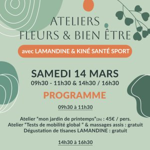 Chaque participant à un atelier floral ou un cours de sport/yoga participera à notre tombola avec un massage et 2 produits LAMANDINE à gagner !