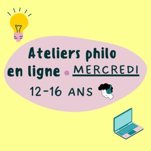 Un atelier philo en ligne un mercredi par mois de septembre 2023 à juin 2024 de 18h30 à 19h30 pour les adolescents de 12 à 16 ans pour s'initier à la philosophie à partir d'une lecture et échanger autour de questions à visée philosophique !
