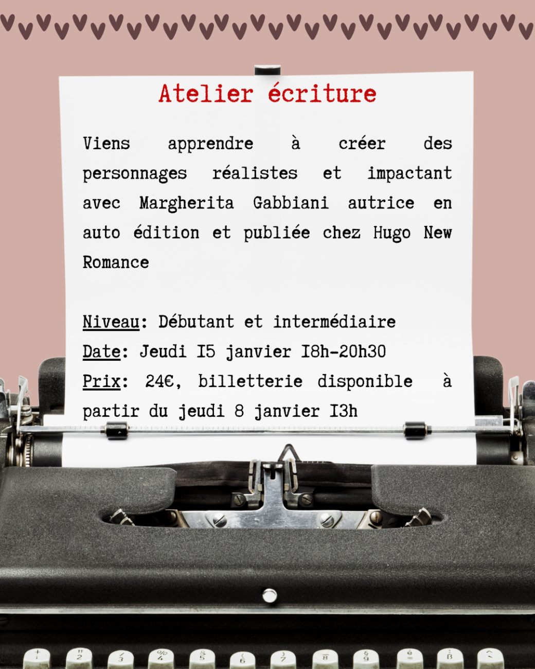 2026-01-15 18:00:002026-01-15 20:30:00Europe/ParisAterlier écriture - Construire des personnages réalistes et impactantsReservations on : https://www.billetweb.fr/aterlier-ecriture-construire-des-personnages-realistes-et-impactants