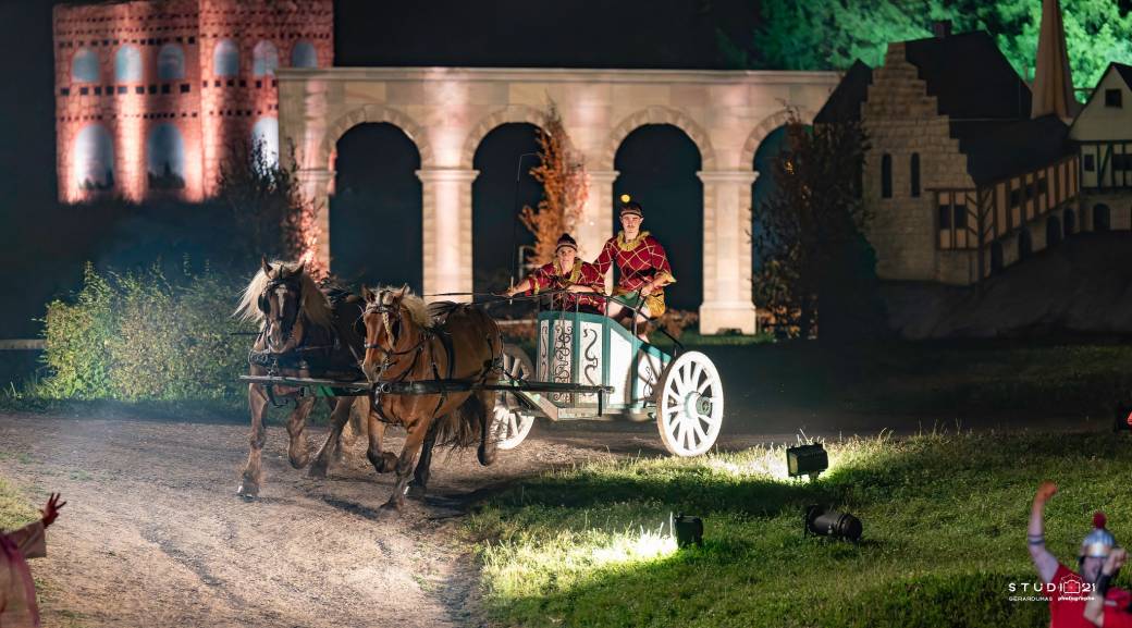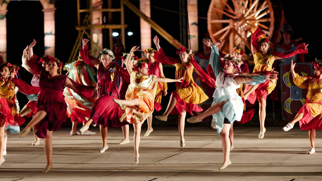 Course de chars, combat de gladiateurs, danses, scènes de feu, tournoi de chevalerie et parade de voltigeurs rythment énergiquement ce nouveau spectacle qui se termine par l’arrivé triomphale du roi François 1er à Autun, la Rome française.