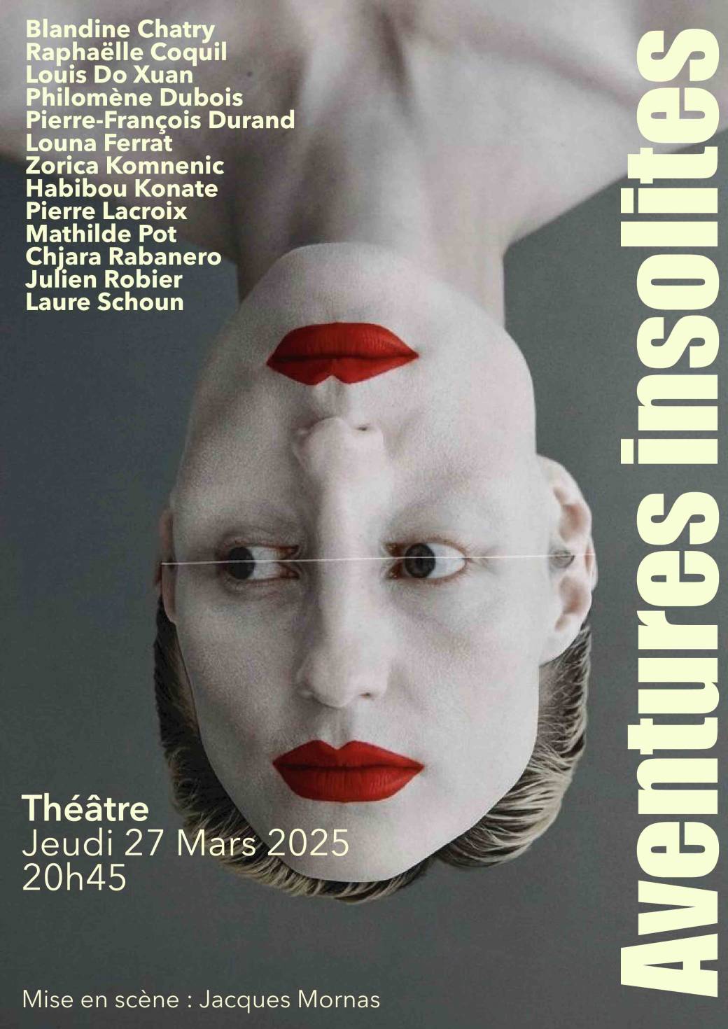 Nous vous invitons à plonger dans l'absurdité de l'existence de personnages loufoques, prisonniers de leur propre condition humaine. Des personnages plus étranges les uns que les autres qui méditent , avec dérision, sur leur quotidien. Ils s’agitent et déambulent en tous sens. Mais qui sont-ils? des fous, des poètes, des philosophes? Au menu: quiproquos, incompréhensions et précipitations. Une écriture percutante, des situations insolites, des mots au vitriol, un humour sans concession.