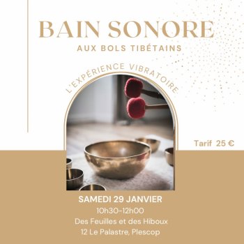 Cette immersion dans les mélodies harmonieuse des bols chantants et autres instruments sonores apporte un moment de calme intérieure, de paix avec soi, de pleine conscience et de méditation.