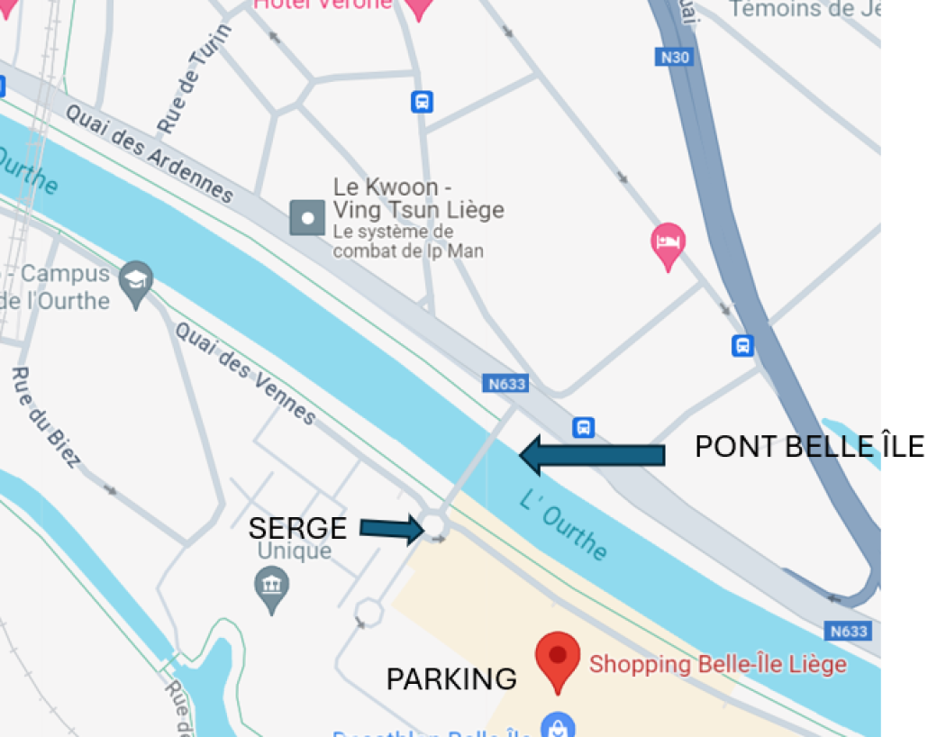 Rendez-vous au niveau du premier rond-point après le pont sur l'Ourthe (Quai des Ardennes).