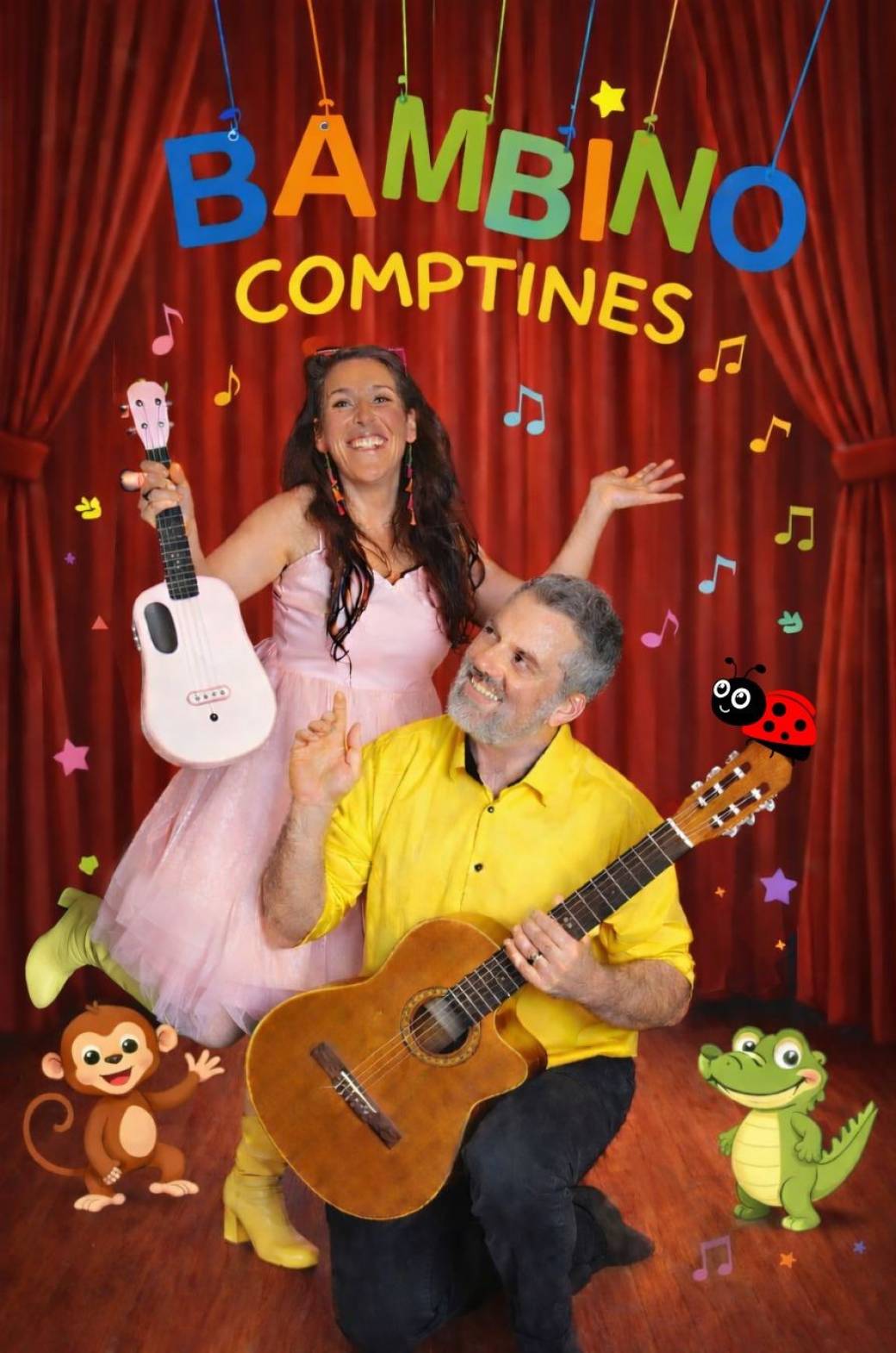 Le duo "Bambino Comptines" monte sur scène pour un moment de pure complicité ! Retrouvez l’énergie de vos chansons et comptines préférées dans un spectacle pétillant et vivant. Ici, on chante ensemble, on bouge et on mime en rythme, on partage les sourires.