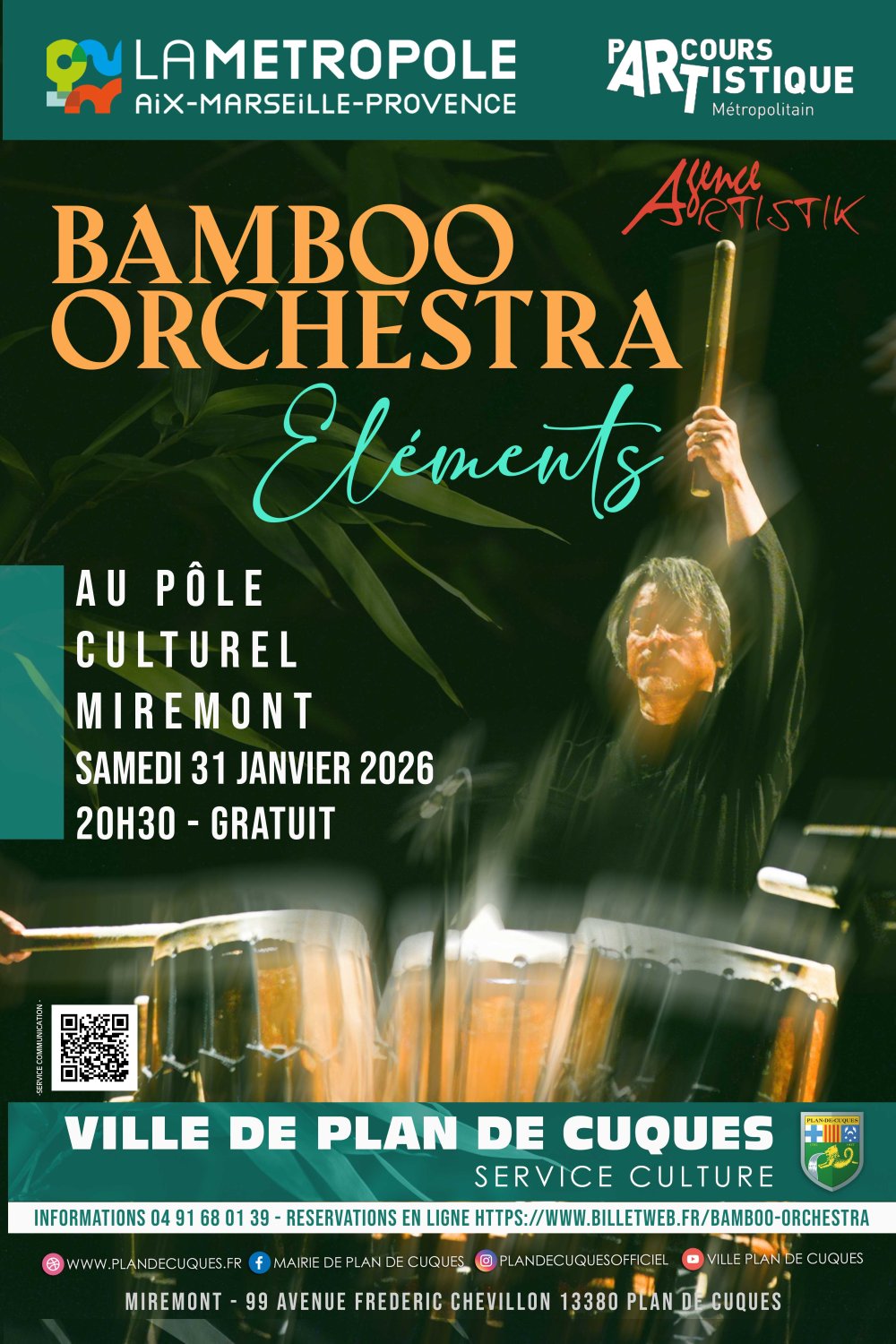 Autour de la thématique universelle des quatre Éléments (Terre, Eau, Feu, Air), le Bamboo Orchestra propose une œuvre sensorielle, à la fois poétique et percutante.