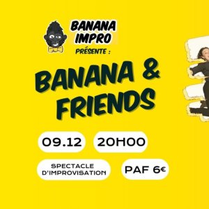 Les comédiennes & comédiens de BANANA IMPRO ambiancent vos mardis soirs avec leur spectacle Banana & Friends : venez rire avec nous, et nous défier en nous imposant les thèmes les plus fous !